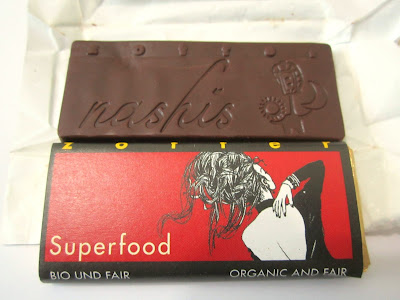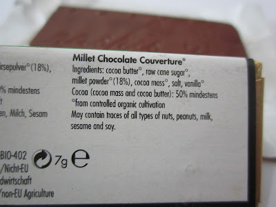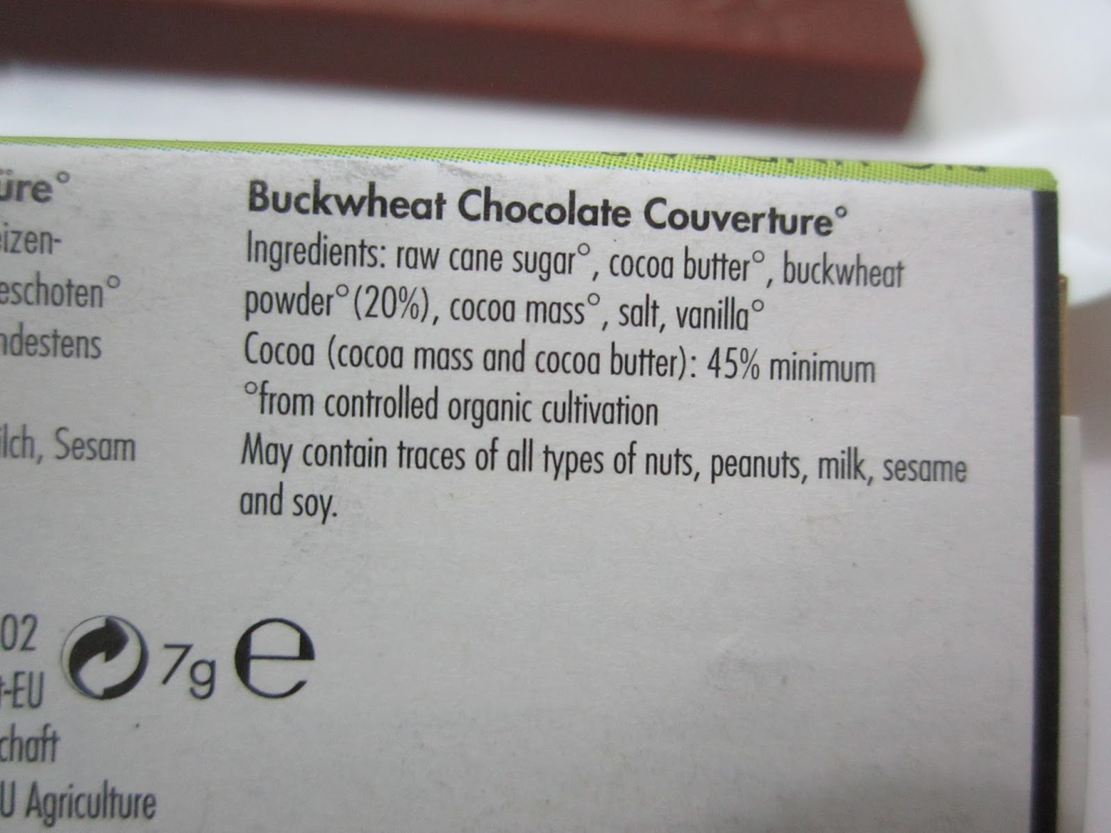 Esse chocolate é meio amargo, feito com 50% cacau e com leite de arroz. Não é tão docinho quanto o Buchweizen e também não derrete na boca, mas é tão gostoso quanto.