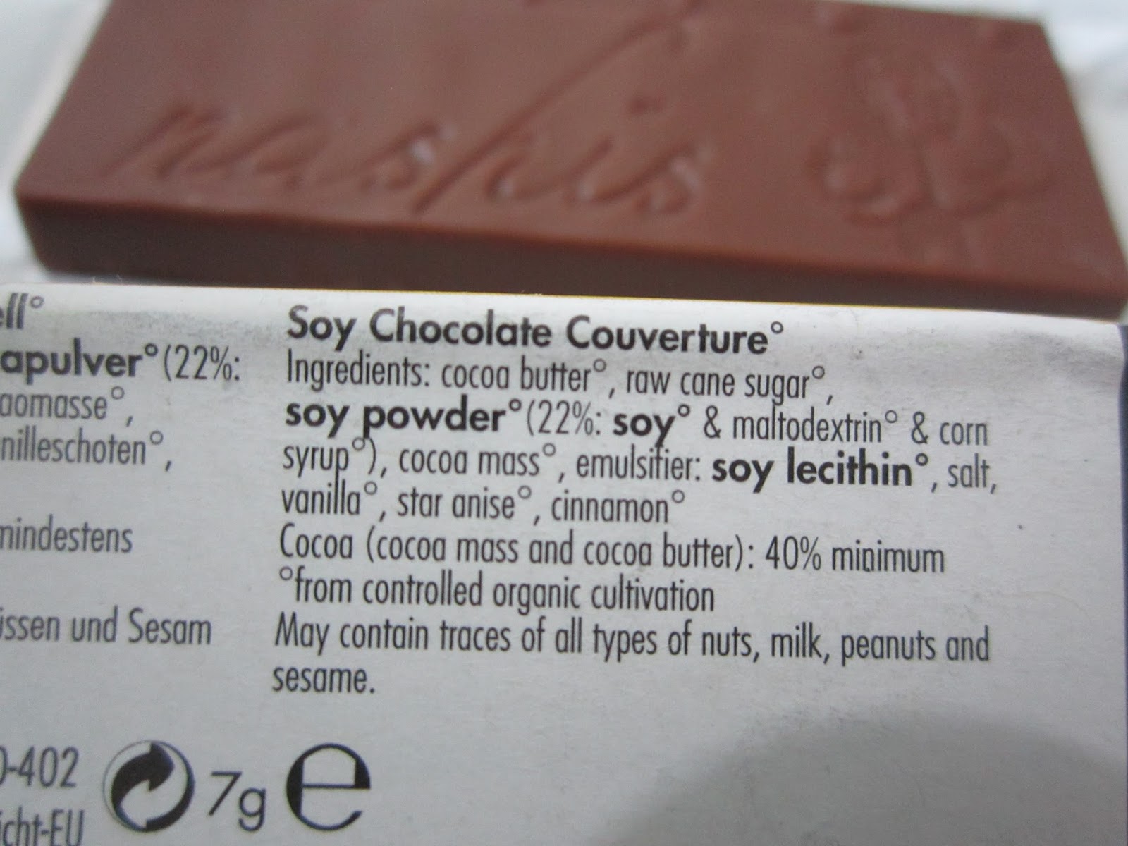 Esse chocolate é uma delícia. Feito com soja não transgênica e com um toque de canela, que dá a ele um sabor super diferente. Ele contém 40% de cacau e derrete na boca com facilidade.